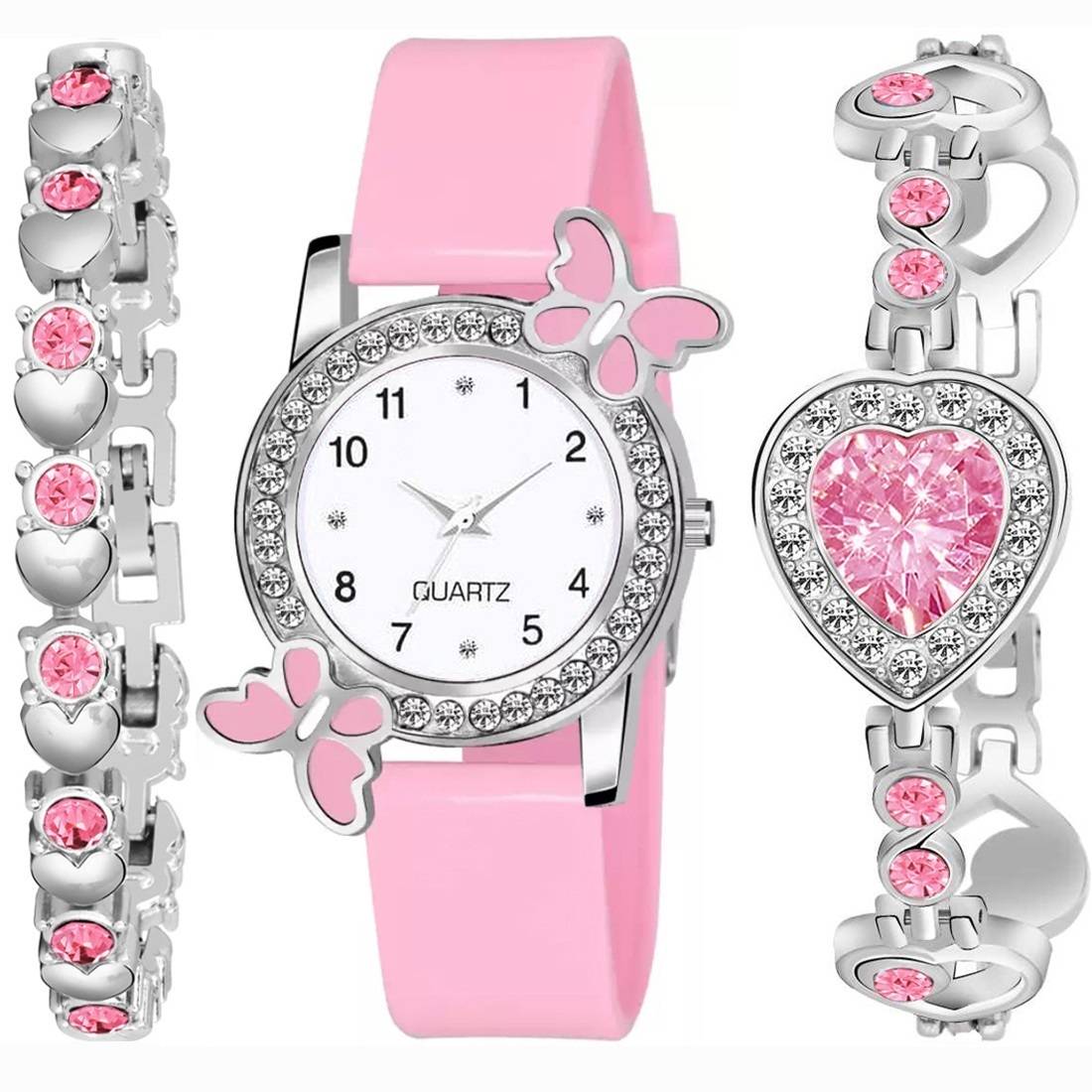 The combo consists of two bracelets that add a touch of cuteness and elegance. The tiny studs add style to the jewellery piece. You can make your kid look fabulous by completing their ensemble with this lovely watch and the matching bracelets. The bracelets comprise a fold-over clasp for secure wear. You can effortlessly style your little girl with this beautiful gift set.