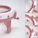 Turn the knitting machine's handle until the white Crochet is aligned with the yarn guide, and then leave a 30cm long yarn in the middle of the knitting machine to lift the yarn into the white crochet; turn the handle clockwise, and then cross the yarn on the hook. Finally, come out of the yarn guide and thread the yarn through the tensioner.