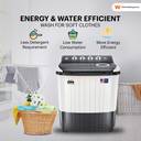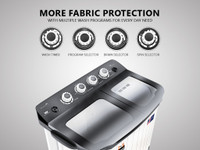 Powered by a robust ABS chassis and a heavy-duty motor, this energy-efficient washing machine can easily cater to a variety of laundry requirements while also keeping your power bills in check. Moreover, boasting a waterproof panel and rust-resistant body, this washing machine ensures long-lasting performance.