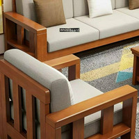 WhiteBeard Premium Quality Sheesham Wood 6 Seater Sofa Set For Living Room/Office Room/Home Fabric 3 + 2 + 1 Sofa Set (Rich Natural Finish 1, DIY(Do-It-Yourself))
