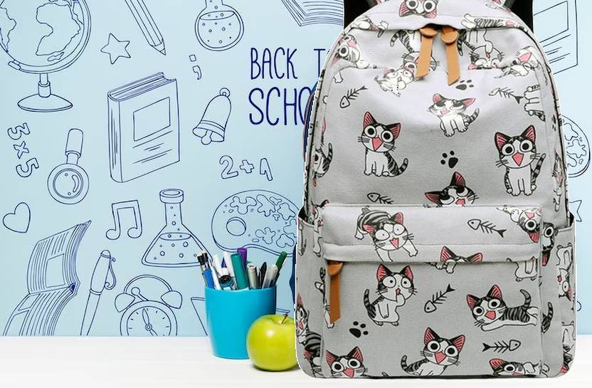 Wiffy Small 20 L Laptop Backpack Cute Cat Style Female Student Waterproof (Grey)