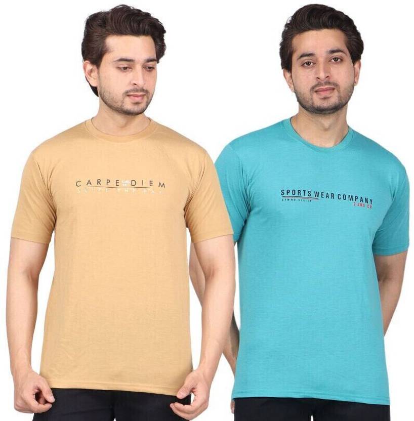 WILD ELEPHANT Pack of 2 Men Printed Round Neck Cotton Blend Multicolor T-Shirt
