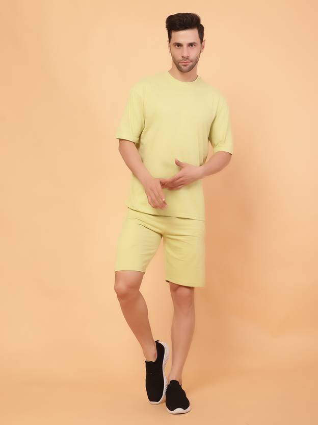 Earthstick Men Top & Shorts Set Yellow Solid