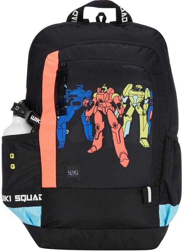 Black and orange brand logo printed Squad 2 backpack Padded ergonomic shoulder straps, has non-padded haul loop2 main compartment with zip closure,2 zip pocket, Padded mesh back Water Resistance: water resistant Comes with a zip pouch Warranty: 5 years Warranty provided by brand owner/manufacturer Disclaimer: Actual product specifications/designs may vary with the physical product