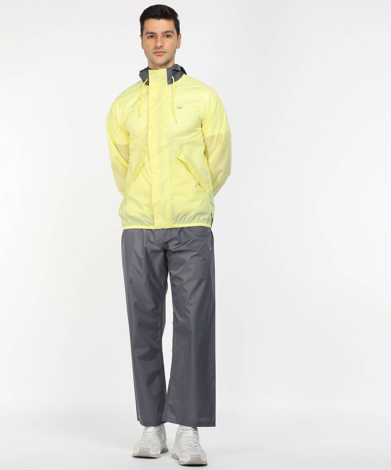 The polyester Rain Cheater Suit engineered by Wildcraft light, compact and super breathable. It comes with velcro plus zipper closure and well-sealed seams that do not let any moisture in and keep you dry at all times, the hood provides back-up protection. The two side zip pockets let you store essentials and travel hands-free while the reflective branding in the front and back ensures your safety when it gets dark for low-light visibility.