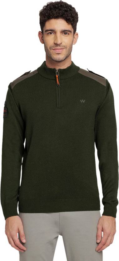 Wildcraft Solid Crew Neck Casual Men Green Sweater