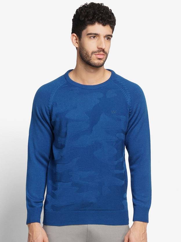 Wildcraft Solid Round Neck Casual Men Blue Sweater