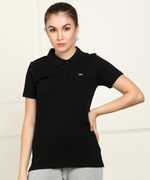 Wildcraft Solid Women Polo Neck Black T-Shirt