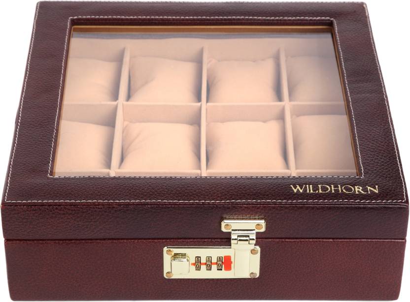 WILDHORN 12 Slots Leather Gifting Watch Case Collection (Watches not Included ). Watch Box (Maroon, Holds 12 Watches)