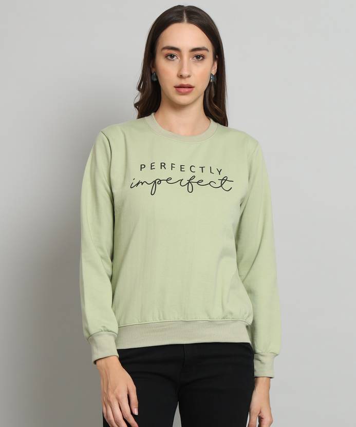 WILLEY Women Printed Round Neck Light Green Sweater
