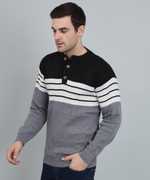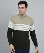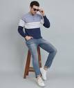 MORKEL Colorblock Mandarin Neck Casual Men Blue Sweater