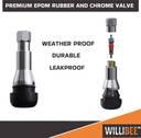 1)Material: The rubber snap-on valve stem is made of high-quality brass and ozone-resistant EPDM Rubber and is equipped with a pure copper valve core. After ozone leakage tests, the service life is prolonged, 2) Tire valve stems: The function of the valve stem is to inflate and deflate the tire to maintain the seal of the tire after inflation, 3) Application: TR414- For Car, TR412- For Bike, PVR-70- For Scooty