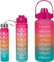 Willtune Unbreakable Water Bottle Motivational Time Marker, Leakproof BPA Free 2000 ml Water Bottles (Set of 3, Pink)