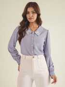 WineRed Women Lavender Collared Shirt with Contrast Embriodery