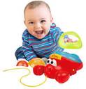 4 brightly coloured stacking cups | Cheeky crab throws its cups off for a fun surprise | Pull along for fun sounds | Moving pincers, colour changing light and cheerful melodies | Balls slide through the stacked cars and train