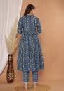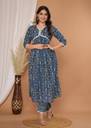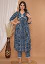 Womens printed cotton v-neck aliya cut anarkali kurta pant set