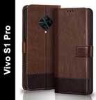 Winkel Flip Cover for Dual Color Magnetic Mobile Cover,Card Holder with Grip Protection for VIVO S1 Pro (Blue, Brown, Cases with Holder, Pack of: 1)
