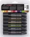 ProMarkers feature a fine rounded bullet nib for detailing at one end and a broad chisel shaped nib on the other for colouring in larger areas.