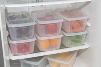 Made using sturdy plastic, these fridge containers are suitable for repeated use in busy kitchens. Each one is dishwasher safe and freezer safe, allowing smooth transitions between storage and cleaning. Additionally, being BPA-free, the material supports safe use with both raw and cooked foods. It also resists staining and holds its shape well when storing richly coloured or strong-smelling foods, including dishes like curries or ingredients, such as onions.