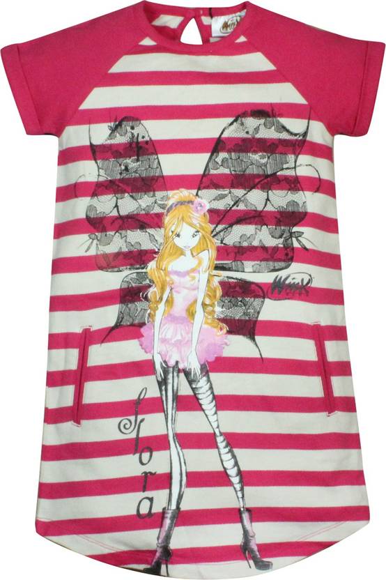 Winx Club Girls Midi/Knee Length Casual Dress (Pink, Half Sleeve)