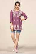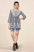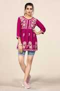 Cotton Rayon Embroidered ¾ sleeves Tops