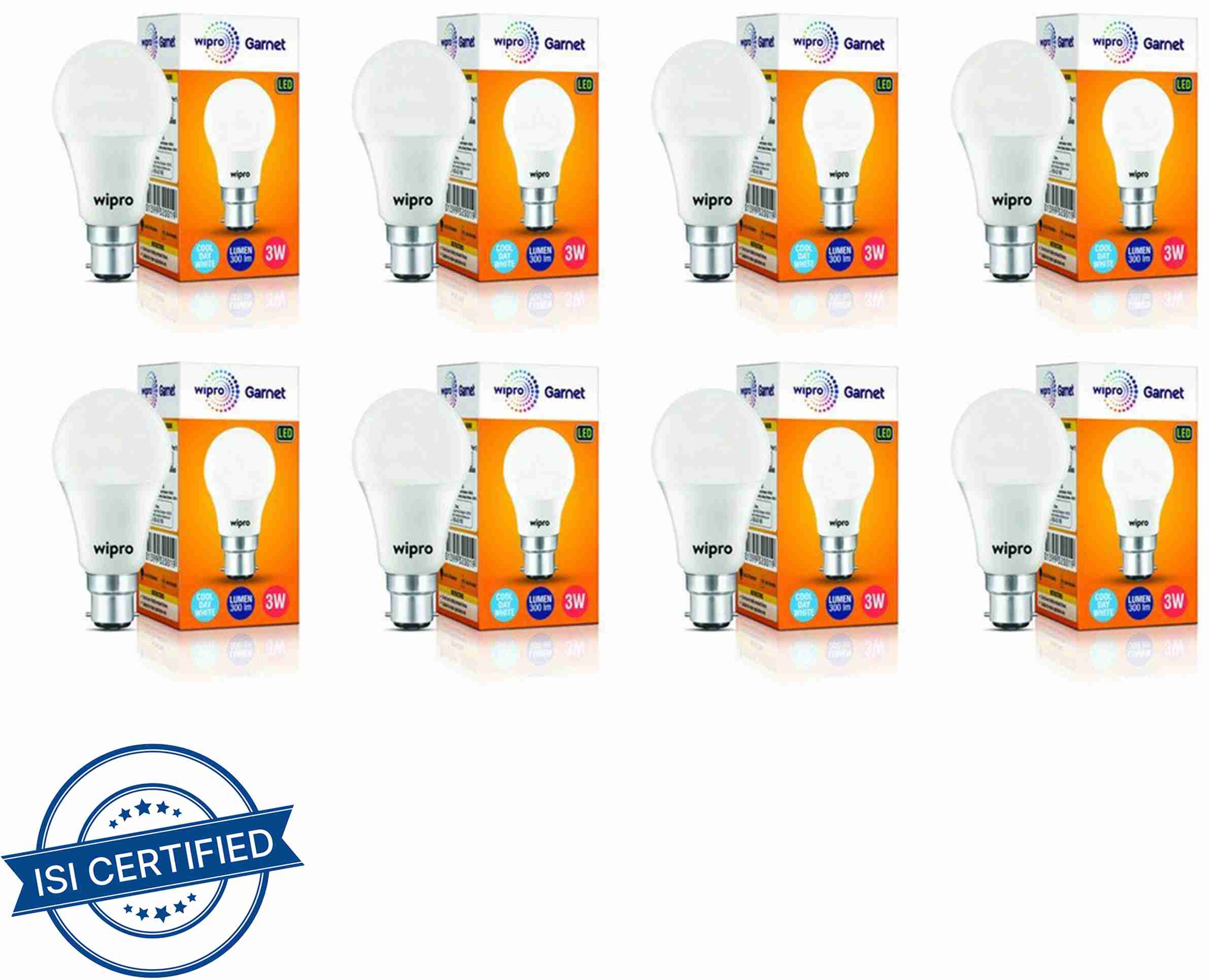 3 W Basic Standard B22 LED Bulb (Yellow, Pack of 8)