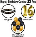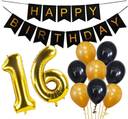 Wisdom Decor Solid 16th Birthday Party Balloons Black Happy Birthday Banner Number 16" Gold Foil Balloon Black Gold Metallic Balloon