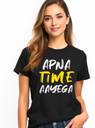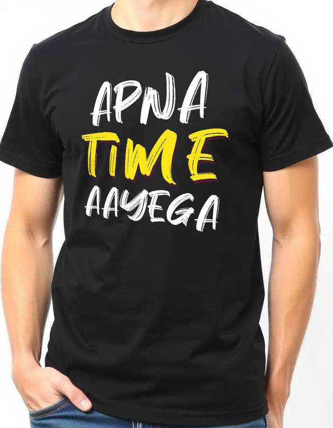 This Round neck half-sleeved Apna Time Aayega T-shirt for men and women is so comfortable for the skin after wearing it on the body. Double stitching over the neck and sleeves grip make this Hindi T-shirt extra durable and fit.