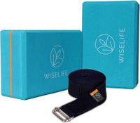 Wiselife Teal Yoga Block + Blue Yoga Belt Soft Surface for balance,support & performance Yoga Blocks (Blue Pack of 2)