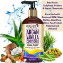 Bring balance to thr hair and follow up your routine with your favorite conditioner. Soft, Natural & Sweet Smelling Shampoo Gently Cleanses Your Hair And Allows Your Scalp Breathe Free To Leave Your Hair Naturally Smooth And Shiny. Powerful Blend Of Australian Tea Tree Oil, Peppermint Oil, Basil Oil, Shea Butter, Black Pepper Extract, Coconut Oil And Other Natural Ingredients Make It The Perfect Choice As A Regular Shampoo For Both Men And Women. After a hair treatment or deep cleanse, give your hair strength, softness, and shine with the WishCare Argan Vanilla Conditioner. This Volume Booster conditioner is infused with Moroccan argan oil that helps nourish & Hydrate hair with a thick, creamy formula that also helps detangle. On the other hand Madagascar Vanilla alongwith other vital herbs promotes strength, shine and hair growth. This conditioner helps repair damaged strands, restore strength and penetrates the hair shaft for bouncy, silky soft perfection with ultra moisture. Argan oil from Morocco is an essential oil that helps lubricate hair and fights. With a lightweight and sulfate-free formula, this refreshing conditioner is a great haircare product for fine hair, straight hair, curly hair, thick hair, coarse hair and damaged hair.