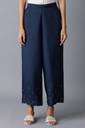 Women Regular Fit Dark Blue Viscose Rayon Trousers