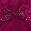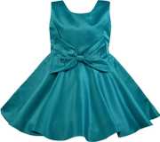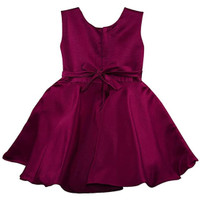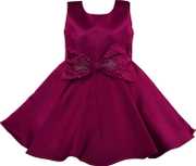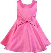 This A-line dress gives your child a great fit. The satin belt on the sides lets you adjust the dress perfectly, giving them a snug fit at the top. The flared skirt part of the dress gives it a fairy-tale like look, which is enhanced by the flowy nature of the fabric. The zip at the back makes it easier to slip your baby into the dress.