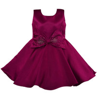 This baby party frock is designed with a sparkly bow in the front, adding the bling your baby needs to look exquisite. Gone are those days when fashion was not associated with baby clothes. Nowadays it is important for parents that their children look good and are appreciated in social setups. Its rich fabric and the cute design makes it a perfect party wear for your daughter.