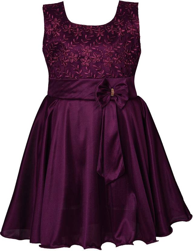 Wishkaro Girls Midi/Knee Length Party Dress (Purple, Sleeveless)