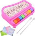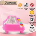 This package includes a delightful 2-in-1 Piano Xylophone Toy along with 2 mallets and 4 song cards, offering a complete musical experience for kids. This kids piano xylophone toy is designed to suit the developmental needs of children aged 3 years and above. This versatile toy baby piano serves a dual purpose, functioning as both a Xylophone and a Piano. It features 8 piano keys, each producing different sounds, and 8 xylophone notes, providing a range of musical options for young musicians. This toy xylophone for kids operates without the need for batteries, ensuring hassle-free playtime and continuous musical enjoyment. This toy piano for kids adds an adorable touch to the musical journey with a charming Hello Kitty theme, capturing the attention and imagination of young ones. The vibrant and colorful piano keys enhance the visual appeal, making the learning and playing experience even more engaging. The xylophone musical toys for kids is crafted from quality Sturdy ABS Plastic Material. The paint use is completely non-toxic, moreover the toy has smooth round edges, which prioritizes the child's safety during playtime. Beyond the joy of creating music, this piano keyboard musical instruments for kids offers a range of developmental benefits, including improvement in Hand-eye Coordination, Motor Skills, Sensory Development, Phonological Awareness, Rhythm and Pattern Recognition, and Color Recognition.