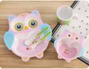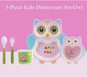 WISHKEY Pack of 5 Bamboo Cute Owl Shape Bamboo Fibre Dinner Set for Toddler Kids, Weaning and Feeding Dining Set for Babies Meal Time Dinner Set (Multicolor)