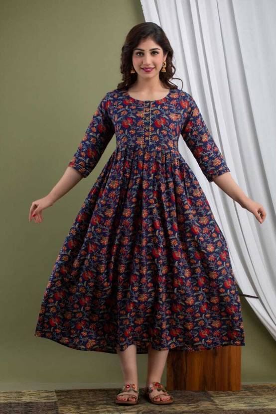 WISTA Printed Pure Cotton Stitched Anarkali Gown (Purple)