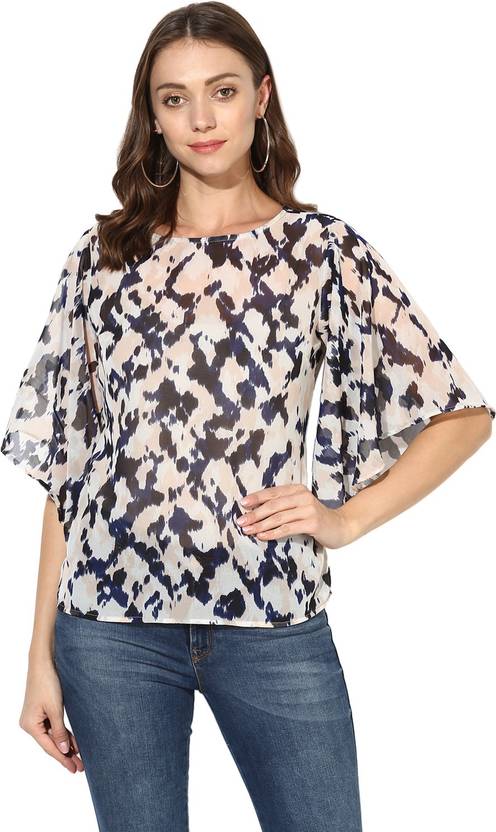 wobbly walk Party Flared Sleeves Printed Women White Top