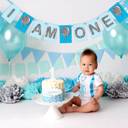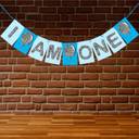 First Birthday Party Bunting Banner (I Am One) Blue, Party Decoration Set of One