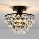 woke Crystal Chandelier Black Modern Semi-Flush Mount Pendant Small Lamp E27 holder Chandelier Ceiling Lamp (White, Black)