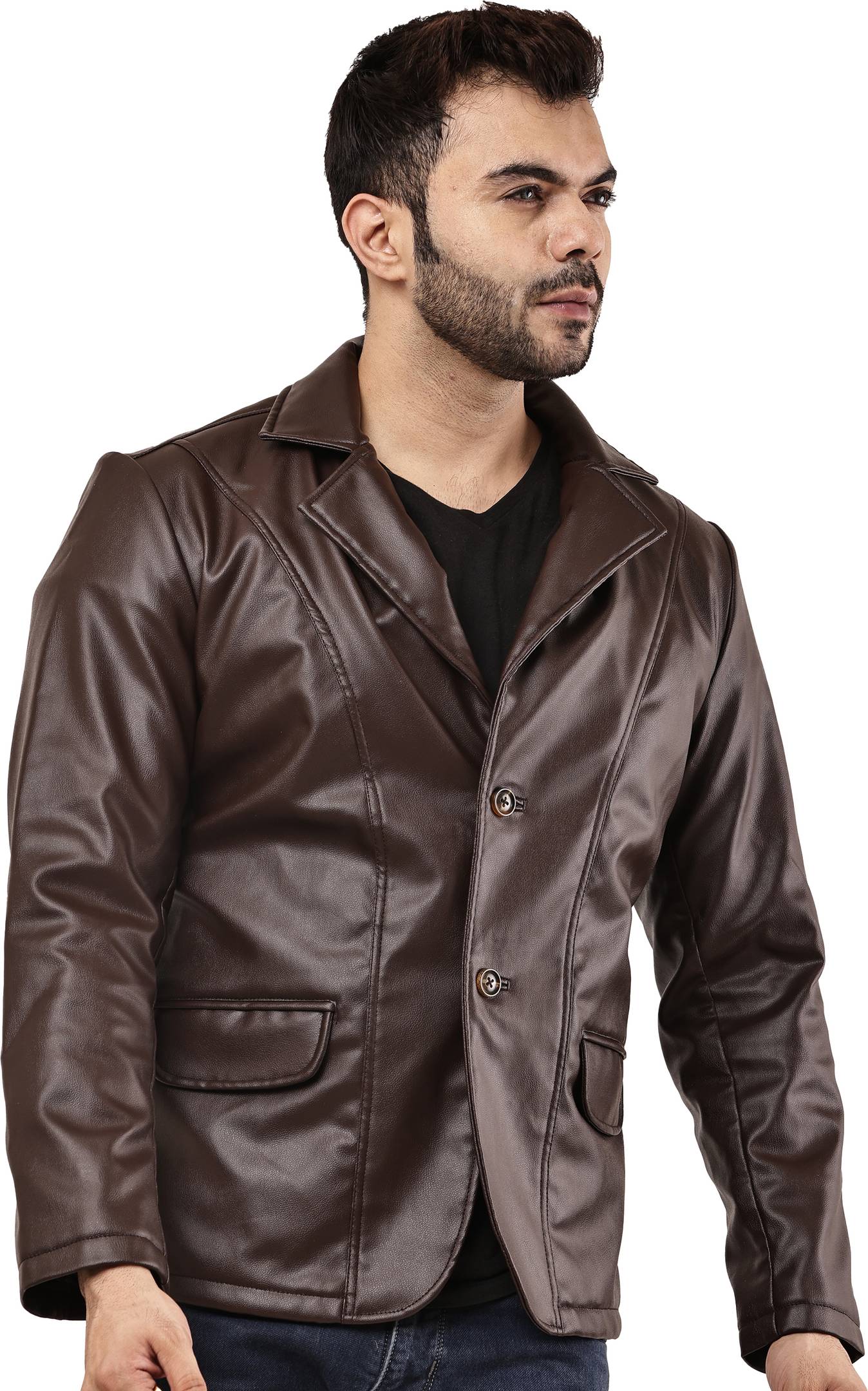 Elevate your style with this sophisticated Wolver Men's Faux Leather Single Breasted Casual Blazer. This contemporary blazer combines the classic appeal of a traditional cut with the edge of faux leather construction. The sleek black finish offers versatile styling options, perfect for both casual outings and semi-formal occasions. Features include a classic lapel collar, convenient front button closure, and practical pockets. The tailored silhouette ensures a refined look while maintaining comfort for everyday wear. The blazer pairs beautifully with both formal trousers and casual denim, making it a versatile addition to any modern wardrobe. The faux leather material offers durability and easy maintenance, requiring simple wiping clean. Layer it over a crisp white t-shirt for a contemporary look, or dress it up with a collared shirt for more formal settings. Available in multiple sizes, this blazer is designed to provide a comfortable fit while maintaining its structured appearance.