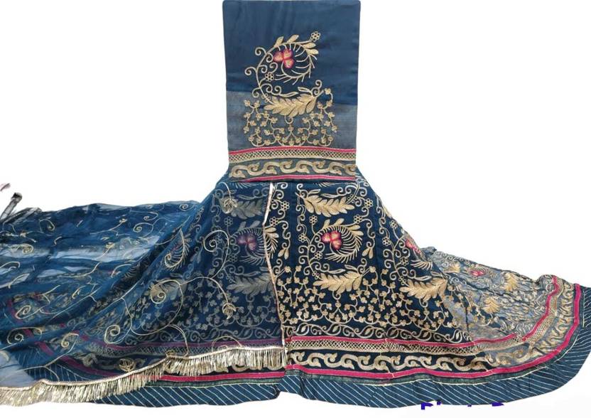 Wolvox Embroidered Semi Stitched Rajasthani Poshak (Blue)