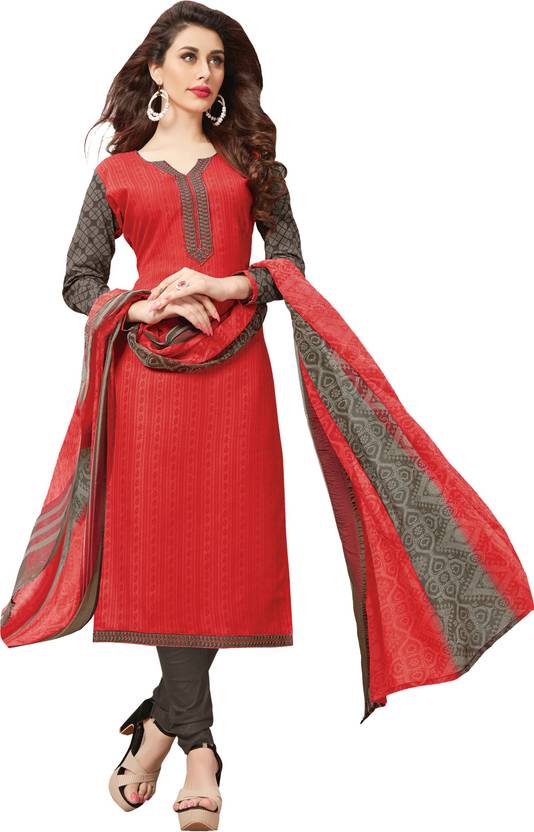 Unstitched Cotton Blend Salwar Suit Material Printed, Embroidered