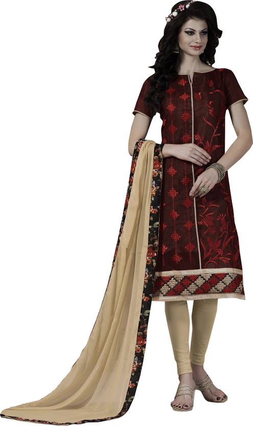 Unstitched Matching Kurti, Salwar & Dupatta. Kurti - Chanderi 2.20 Mt.Heavy Embroidery with lace. Salwar - Cotton 2.00 Mt.Dyed. Dupatta - Nazneen 1.90 Mt. Complete Suit will give extra ordinary Glamourous Look. Suitable for All Ocasions like Function, Party, Festival Day.