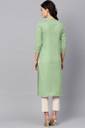 The Rayon fabric in this attractive Light Green color beautiful readymade Kurti looks elegant on you. It is light in weight and will be soft against your skin. Its unique design and beautiful colour will fetch a lot of second glances as you club it with contrast colored pumps and flashy accessory. It is capable of making you look gorgeous. Wear it and put your step in the world of fashion. It looks stunning every time you match it with accessories.