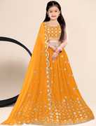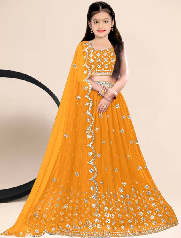 Women Wed Girls Lehenga Choli Ethnic Wear Embroidered Lehenga, Choli and Dupatta Set (Yellow, Pack of 1)