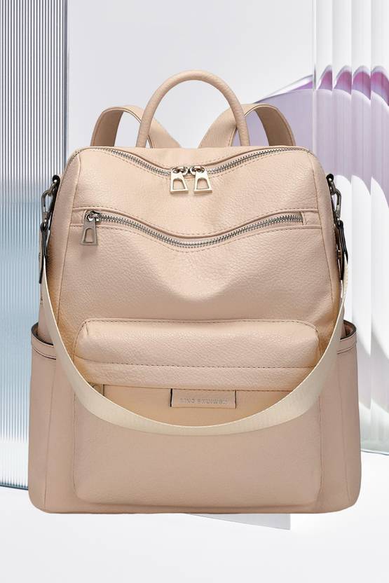 WomenBuzz Purse for Women Convertible 25L Travel Vintage PU Leather Shoulder 25 L Backpack (Beige)
