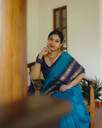 Luxurious Banarasi silk saree with zari border, jacquard pallu, matching blouse.