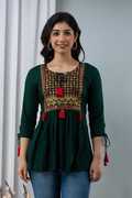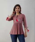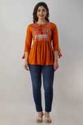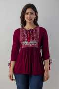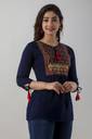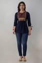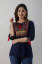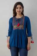 WOMENISHKURTI Casual Embroidered Women Blue Top