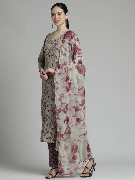d.) Jaipur Kurti Floral Print Kurta, Palazzo & Dupatta Set